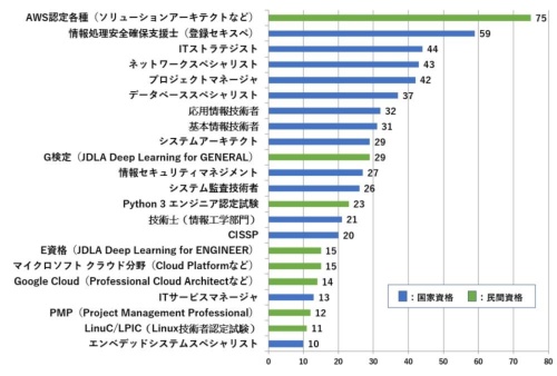 日経クロステックが実施した「IT資格実態調査」によると、情報処理安全確保支援士やITストラテジストなどの国家資格をおさえて、1番人気の資格がこのAWS関連資格でした。